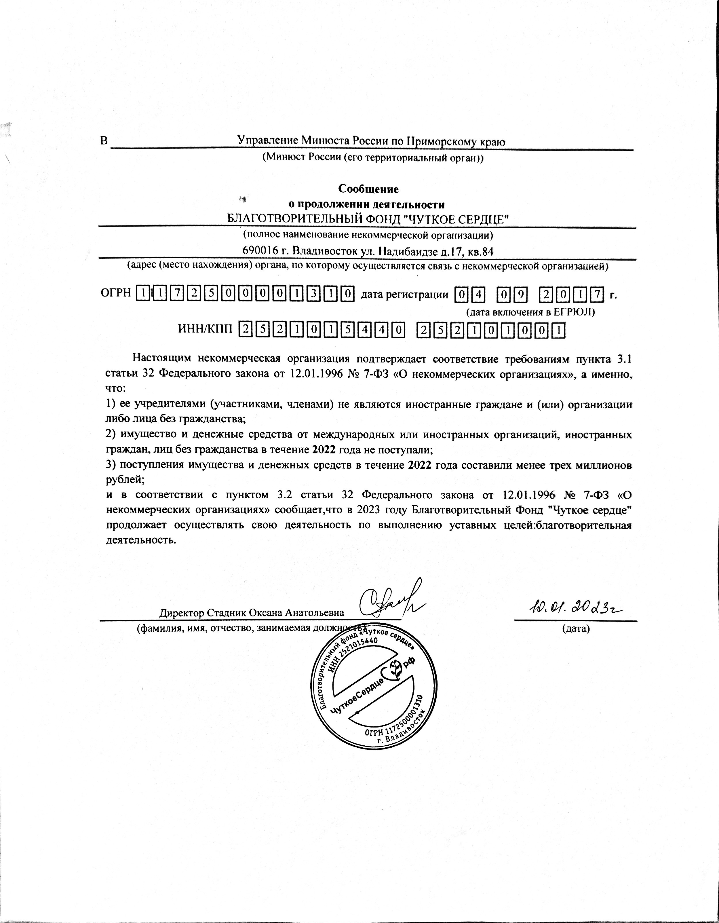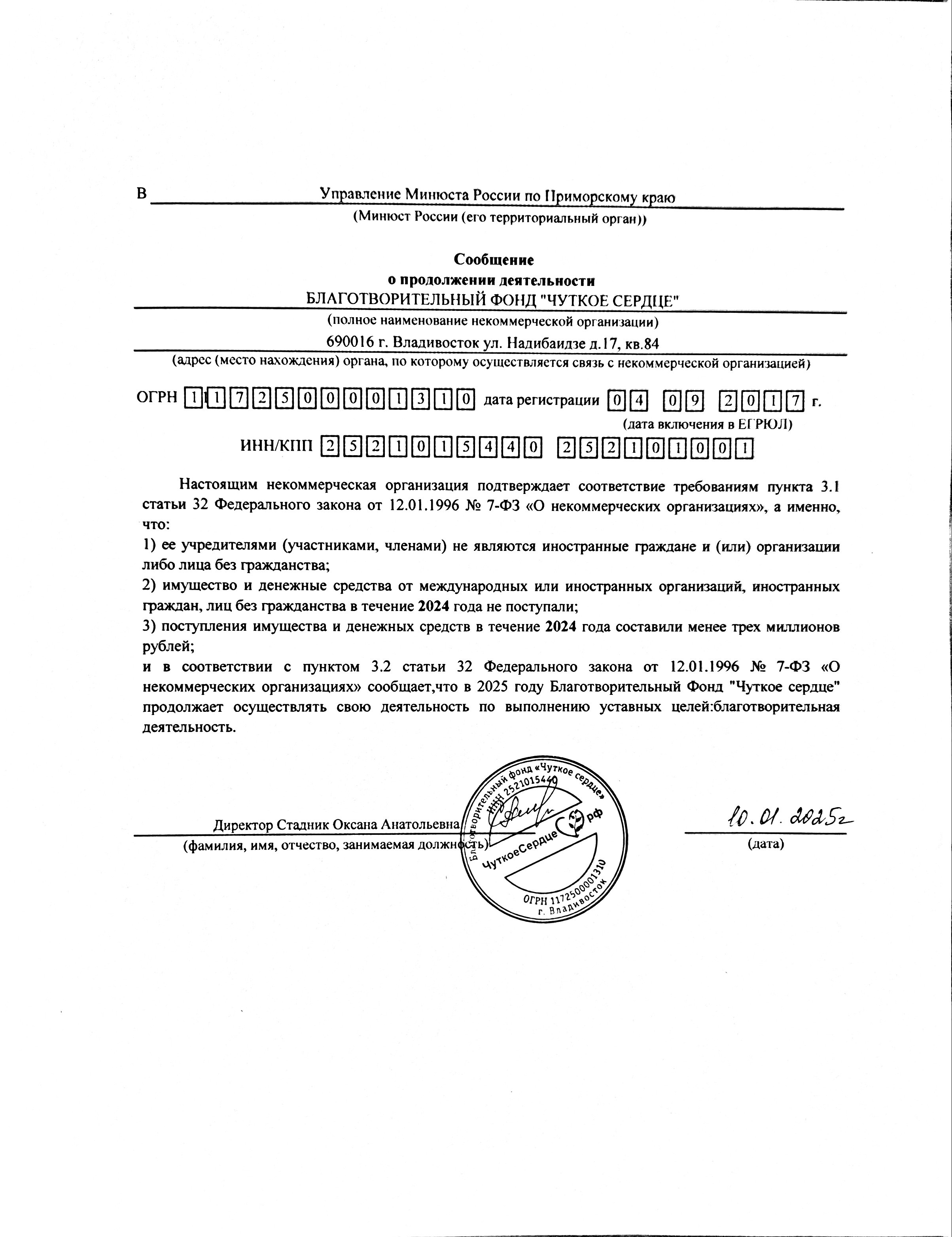 - Наименование получателя платежа: Благотворительный фонд “Чуткое Сердце”